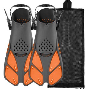 - At amazon.com you can purchase Amazqi Swim Fins, Snorkel Fins Travel Size Short Adjustable for Swimming Flippers Open Heel Snorkeling Diving Fins Fit for Men, Women and Kids for only $20,90