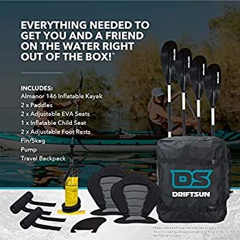 - The lowest price of Driftsun Almanor 146 Two Adult Plus one Child Inflatable Recreational Touring Kayak with EVA Padded Seats with High Back Support, Includes Paddles, Pump, Child Seat was obtained on enero 28, 2026 6:50 am.