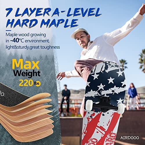 - The lowest price of AIRDOOO Standard Skateboards for Beginners , 31 Inch Double Kick Concave Complete Skateboard for Boys Girls Kids,7 Layer Maple Deck Trick Skteboards for Teens Adults was obtained on marzo 3, 2026 5:36 pm.