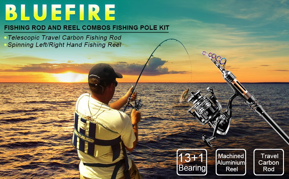 - At amazon.com you can purchase BlueFire Fishing Rod Kit, Carbon Fiber Telescopic Fishing Pole and Reel Combo with Spinning Reel, Line, Lure, Hooks and Carrier Bag, Fishing Gear Set for Beginner Adults Saltwater Freshwater(2.1M) for only $38,99