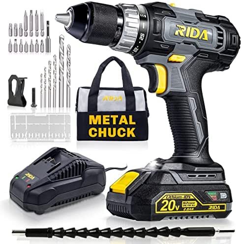 - The lowest price of RIDA Cordless Drill Set 20V Electric Power Drill 1/2'' Keyless Metal Chuck 355 In-lb(40N.m) Torque 2.0AH Li-ion Battery & Fast Charger, Variable Speed, 25+1 Position and 22pcs Drill/Driver Bits was obtained on mayo 14, 2024 7:26 am.