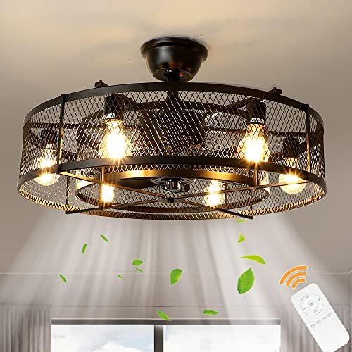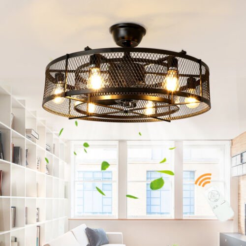 - At amazon.com you can purchase Depuley 26” Farmhouse Ceiling Fan with 6 Lights, Industrial Indoor/Outdoor Ceiling Fan Lighting, Matte Black Flush Mount Ceiling Fan Lights, Cage Ceiling Fan with Remote 3 Speed Timing (Bulb Not Incl) for only $209,99