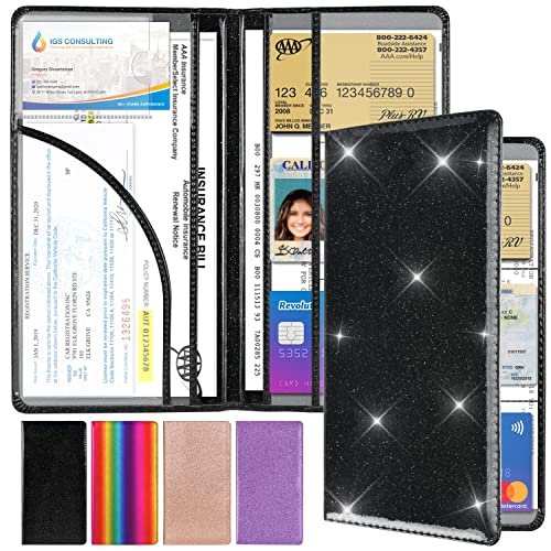 - At amazon.com you can purchase Car Registration and Insurance Holder, Timmel Glitter PU Leather Girly Accessories Interior for Women, Truck Glove Box Organizer Document Holder Wallet Case with Magnetic Closure Essential Documents, Cards, Driver License, Black gold for only $12,99