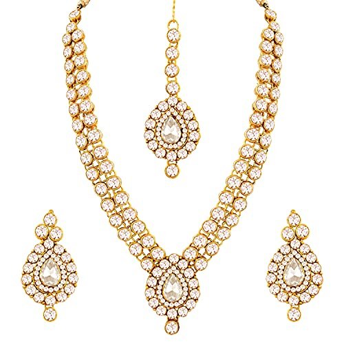 - At amazon.com you can purchase Aheli Indian Wedding Wear Faux Stone Necklace with Maang Tikka Set Elegant Ethnic Jewelry for Women for only $25,64