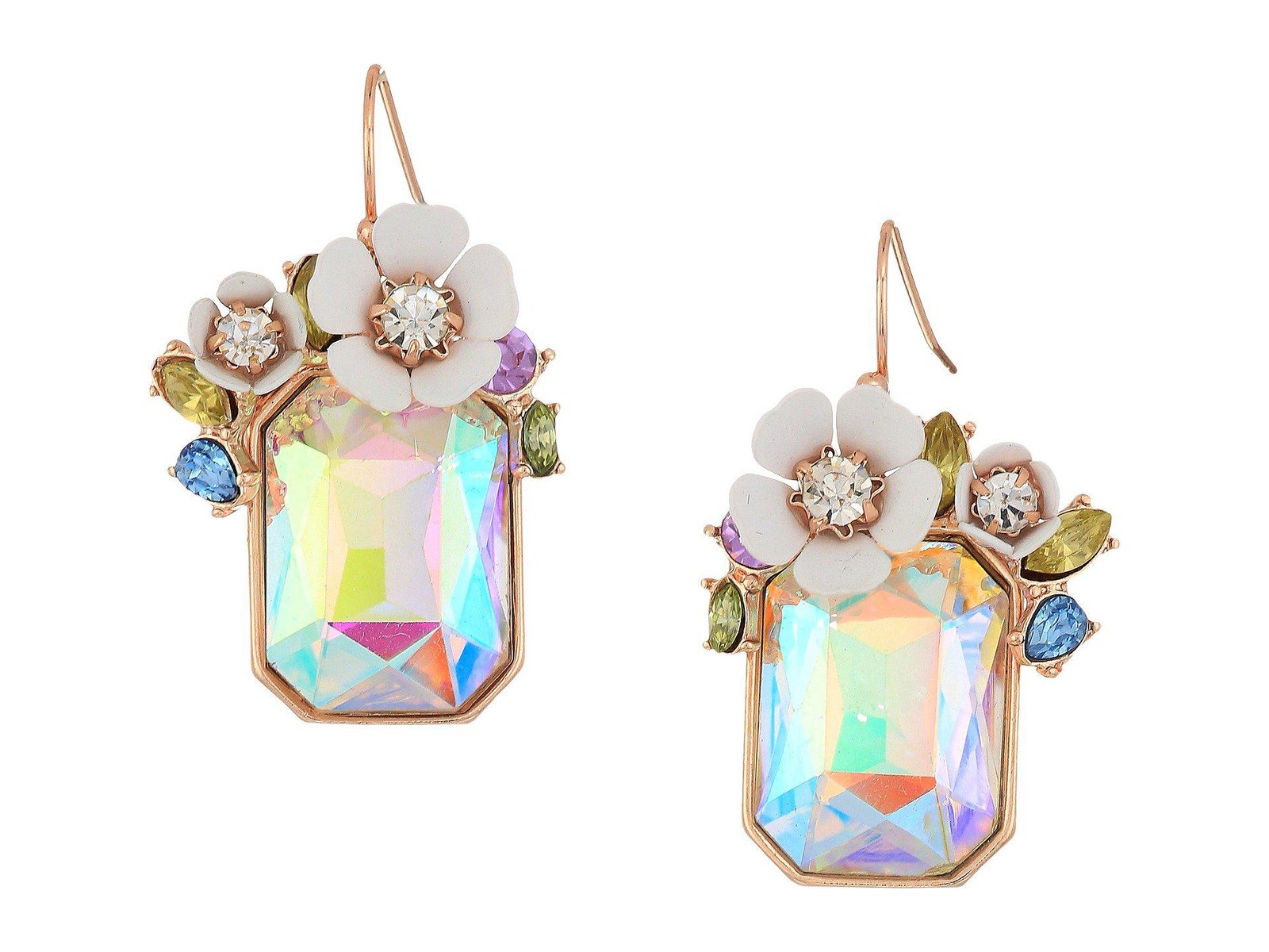Establecer alerta para el producto: Betsey Johnson Flower Rectangle Stone Drop Earrings - $18,30