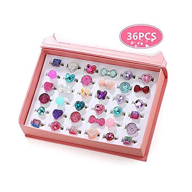 • At amazon.com you can purchase PinkSheep Little Girl Jewel Rings in Box, Adjustable, No Duplication, Girl Pretend Play and Dress Up Rings (24 Lovely Ring) for only $11,99