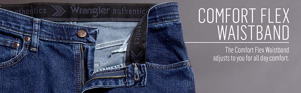 - At amazon.com you can purchase Wrangler Authentics mens Comfort Flex Waist Relaxed Fit Jeans, Dark Stonewash, 48W x 30L US for only $30,25