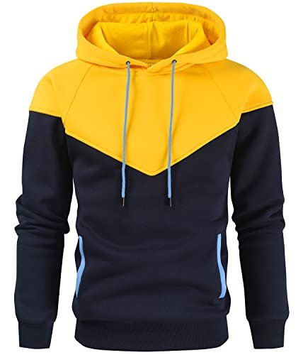 Establecer alerta para el producto: Niceif Men's Heavy Blend Fleece Hooded Sweatshirt with Pockets, Yellow Navy XL - $25,99