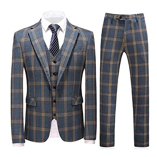 • At amazon.com you can purchase Mens Suits 3 Piece Check Plaid Suit Single Breasted One Button Jackets Formal Dress Party Prom Tuxedo Suits Blazer Yellow Blue for only $92,99