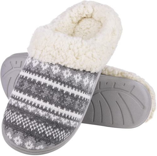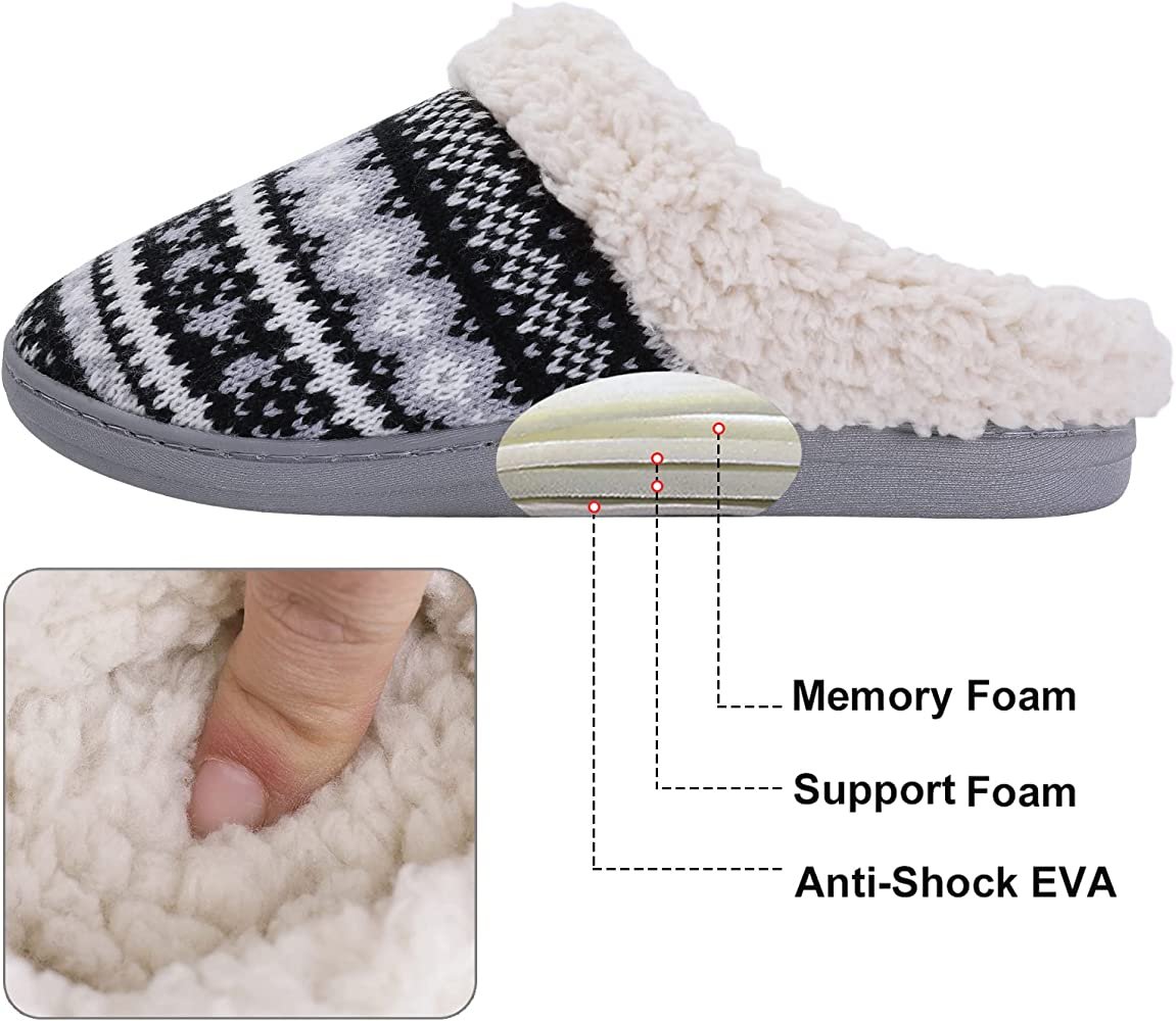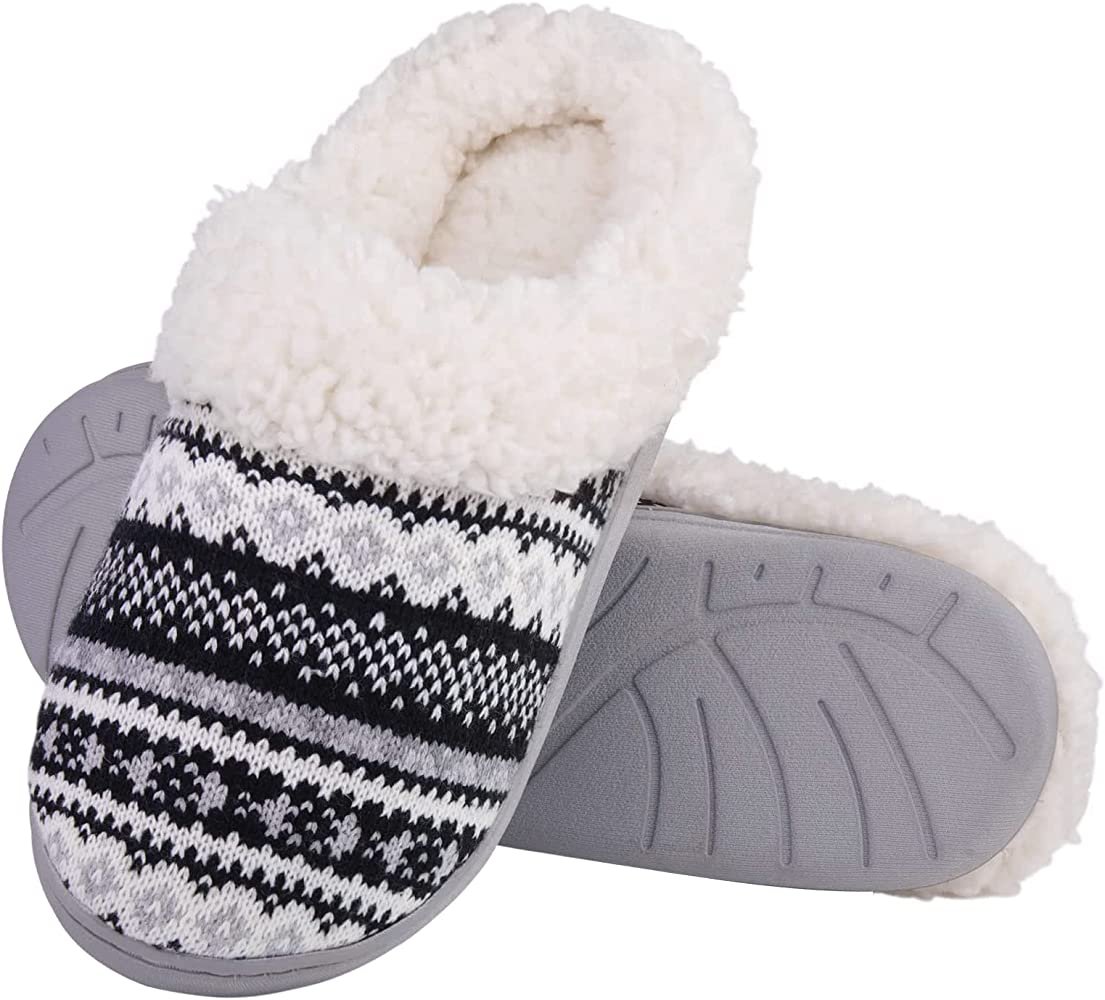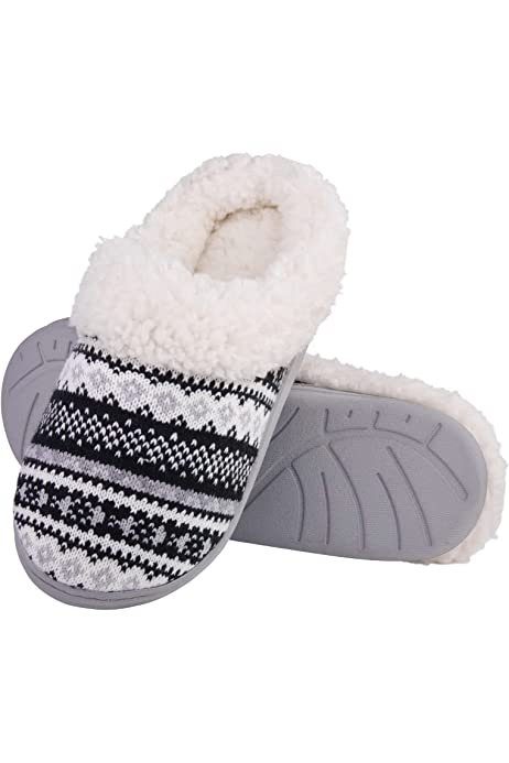 • At amazon.com you can purchase Evshine Warm Knit House Slippers for Women Comfy Fleece Lined Winter Slippers with Memory Foam and Indoor Outdoor Soles for only $17,99