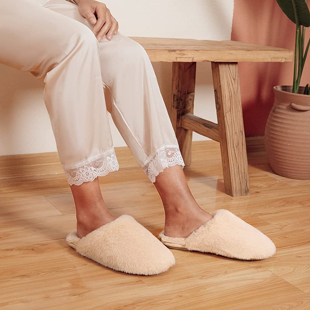 - At amazon.com you can purchase Snug Leaves Women's Fuzzy House Memory Foam Slippers Cute Furry Grey Print Faux Fur Lined Closed Toe Indoor Slides Bedroom Slip On Shoes with Soft Rubber Sole (Grey, Size 7-8) for only $19,99