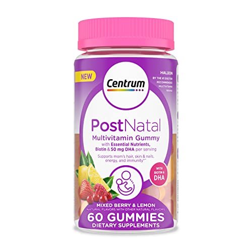 • At amazon.com you can purchase Centrum Postnatal Multivitamin Gummies with Biotin and DHA, Mixed Berry and Lemon Flavors - 60 Count, 30 Day Supply for only $14,97